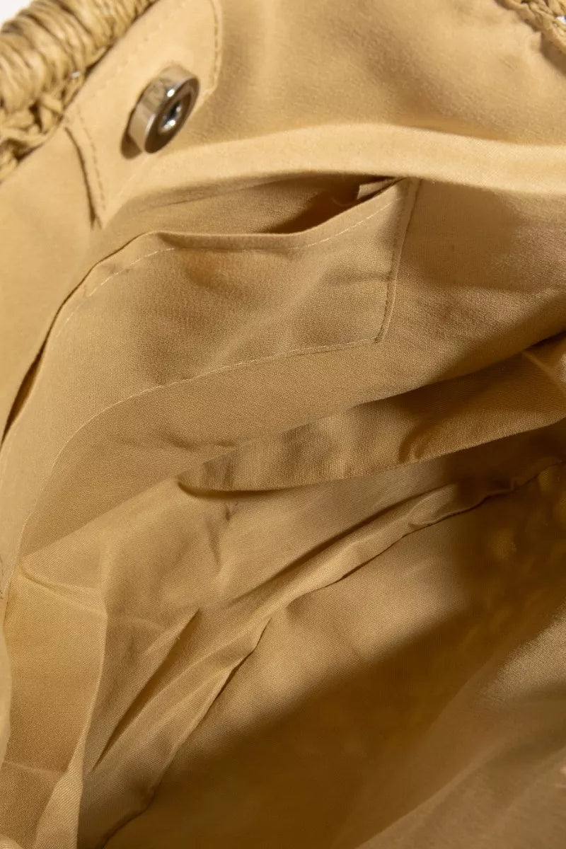 Fame Circle Handle Circle Straw Braided Hand Bag
