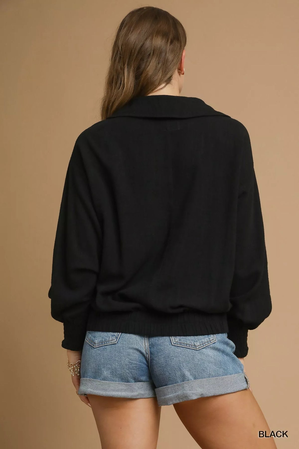 Umgee Linen Long Sleeves Elastic Hem Blouse