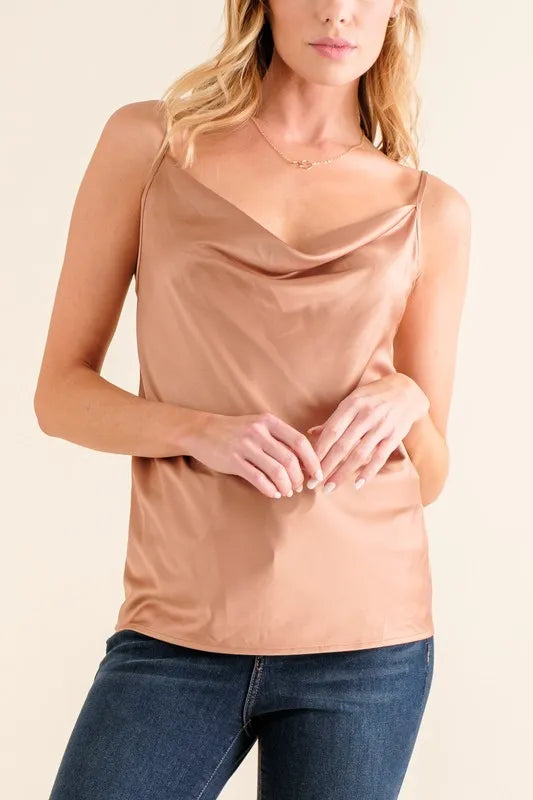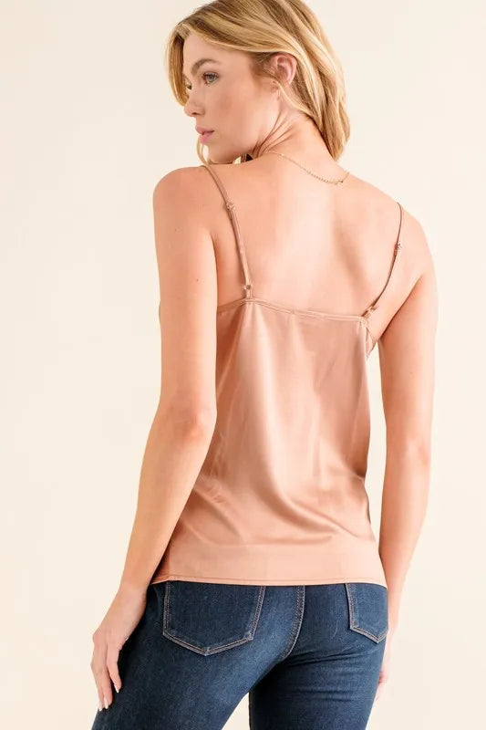 This satin cami with adjustable straps is the perfect blend of style and comfort. The luxurious satin material adds a touch of elegance, while the adjustable straps ensure a perfect fit. It's a versatile piece that can be dressed up for a night out or worn casually for everyday wear.